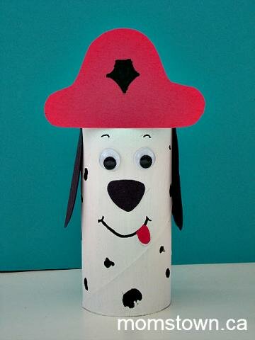 Try this Dalmation dog fire house pet or a Firefighter craft from DLTK-Kids! Easy to do with templates coloured and glued onto toilet paper rolls!